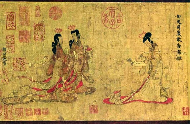 Гу Кайджи. Наставление учительницы придворной даме. Начало свитка. Копия. Тушь и краски на шелке. 600-1000 годы. Британский музей. Лондон.