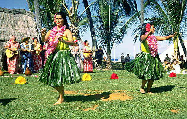 Танец гавайских девушек в традиционных костюмах.