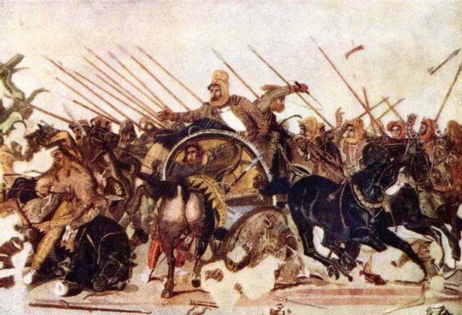 Битва Александра Македонского с персидским царем Дарием III Кодоманом. Фрагмент мозаики из дома Фавна в Помпеях. Вторая половина 2 века. Национальная галерея Каподимонте в Неаполе.