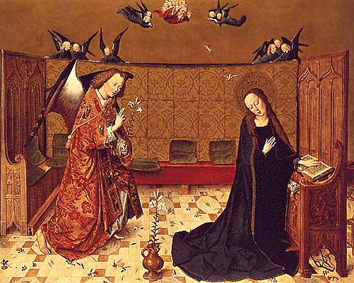 «Благовещение». Створка алтаря работы Мастера «Жизни Марии» (кельнская школа). Ок. 1460. Старая пинакотека. Мюнхен.
