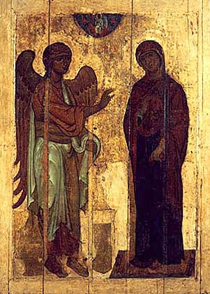«Устюжское Благовещение». Икона 12 в. Третьяковская галерея.