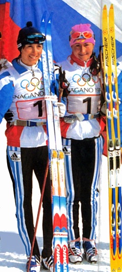 Нина Гаврылюк (на снимке слева) — трехкратная олимпийская чемпионка (1988, 1994, 1998) в лыжной эстафете.