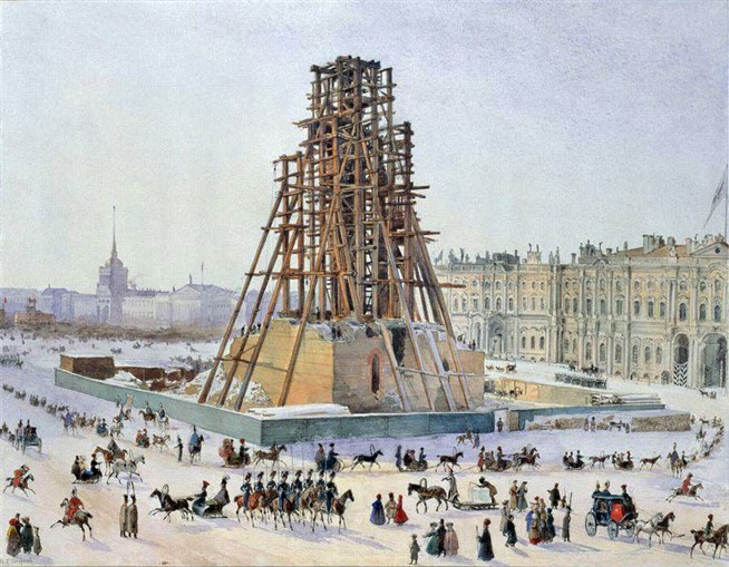 Г.Г. Гагарин. Александрийская колонна в лесах. 1832-1833 годы. Эрмитаж, Петербург.