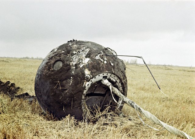 Спускаемый аппарат корабля «Восток» после приземления. 12 апреля 1961 года.