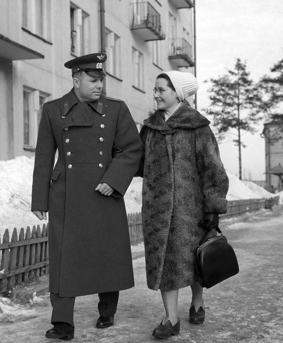 Звездный городок. Юрий Гагарин с женой Валентиной. 9 апреля 1963 года. Снимок Марка Редькина.