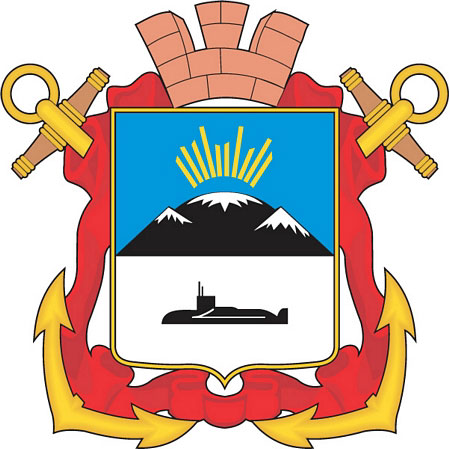 Герб Гаджиево был принят 11 мая 1995 года. В верхнем лазоревом поле три черные сопки с серебряными вершинами, над ними золотое северное сияние. В нижнем серебряном поле силуэт черной подводной лодки. Щит увенчан червленой стенчатой короной с тремя зубцами. За щитом два золотых накрест положенных якоря, перевитых красной (александровской) лентой, внизу которой написано название города. Сопки (скалы) означают прежнее название города (Скалистый), а их заснеженные вершины и северное сияние — расположение города в Заполярье. Три сопки символизирует наименование базировавшегося в Гаджиево флотского соединения — Третья флотилия атомных подводных лодок Северного флота. Серебряное поле указывает на плавание в арктических широтах. Червленая корона с тремя зубцами, якоря и александровская лента означают статус приморского города.