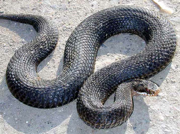 Гадюка (Vipera berus) абсолютно черного окраса (меланист).