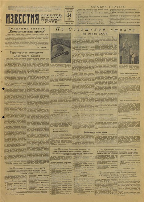 Газета «Известия» №120 от 24 мая 1945 года (страница 1)