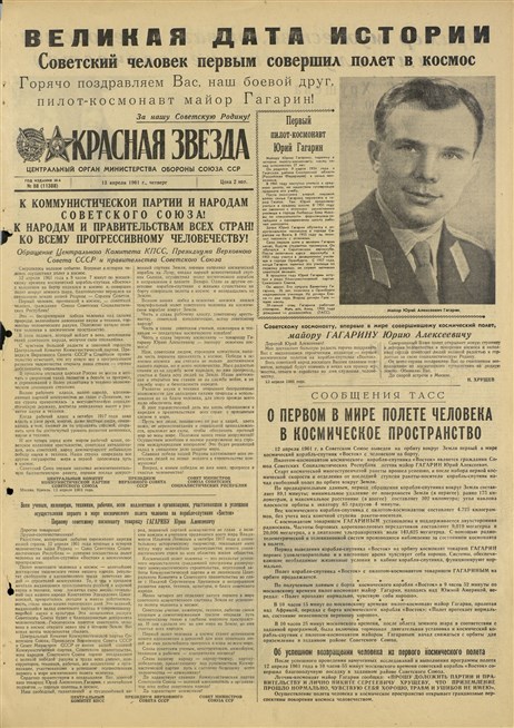 Газета «Красная Звезда» от 13 апреля 1961 года.
