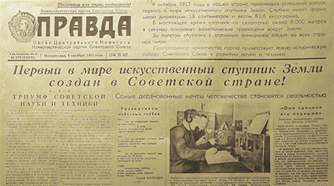 Передовица газеты «Правда» от 6 октября 1957 года о запуске в СССР первого в мире искусственного спутника земли.