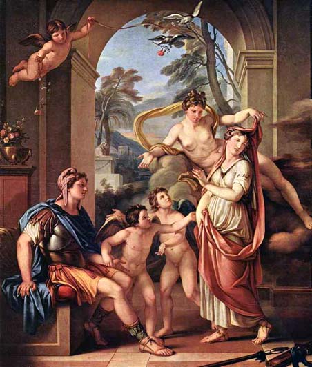 Гевин Гамильтон. Венера обещает Парису Елену в жены. Из «Историй Парса и Елены». 1782-1784 годы. Музей Рима.