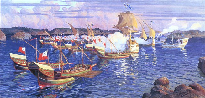 П. Н. Вагнер. «Гангутское сражение. 1714 год». 1912.