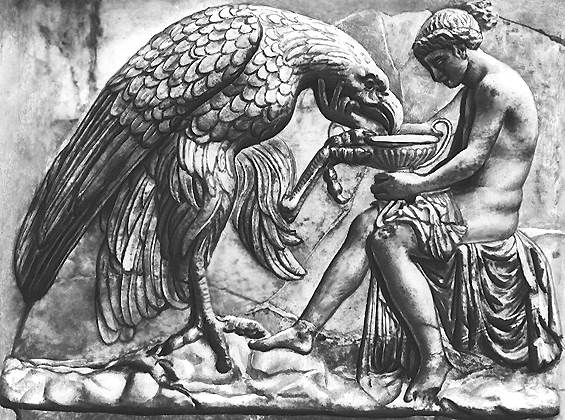 «Ганимед с орлом». Римская копия с греческого оригинала 3-2-вв. до н. э. Мраморный рельеф. Эрмитаж.