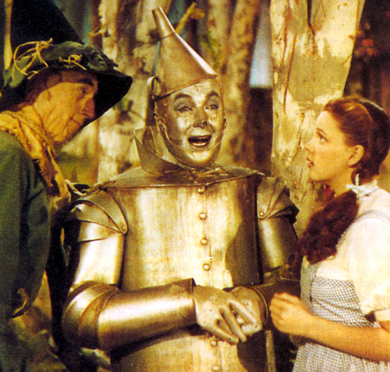 Страшила (Рей Болджер), Железный Дровосек (Джек Хейли) и Дороти (Джуди Гарленд). Кадр из фильма «Волшебник из страны Оз». 1939 год.