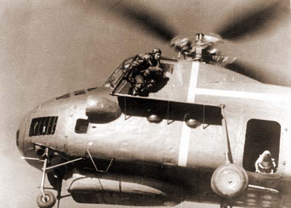 Юрий Гарнаев перед прыжком с парашютом во время испыпательного полета на отстрел лопастей вертолета.
