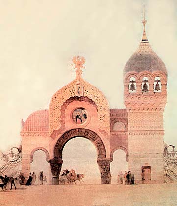 Виктор Гартман. Проект городских ворот в Киеве. Главный фасад.