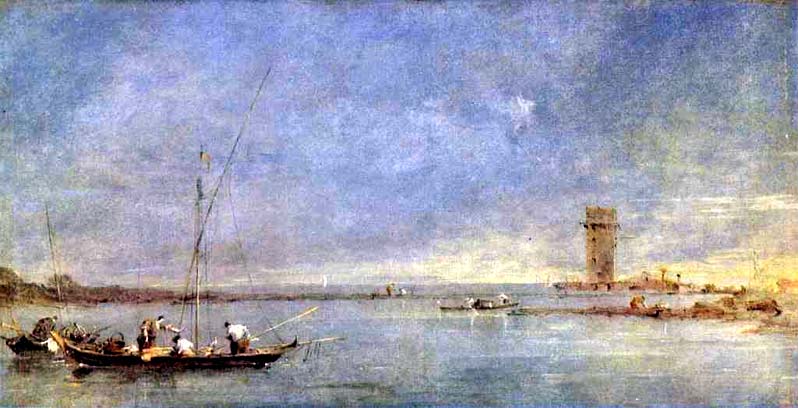 Франческо Гварди. Вид на Венецианскую лагуну с башней Мальгера. Третья четверь 18 века. Национальная галерея в Лондоне.