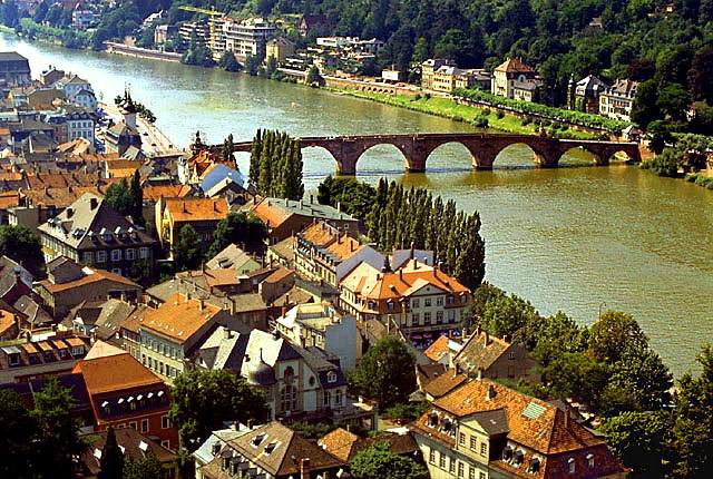 Гейдельберг. Вид на город и средневековый мост через Неккар.