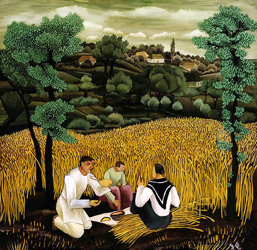 Иван Генералич. «Жнецы». 1939. Масло, стекло. Галерея наивного искусства, Загреб, Хорватия.