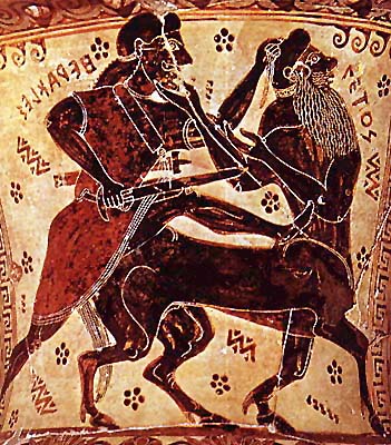 «Борьба Геракла и Несса». Фрагмент росписи чернофигурной амфоры. Ок. 620 до н. э. Национальный музей. Афины.