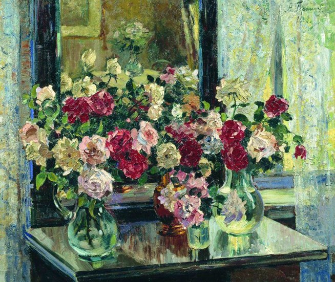 А.М. Герасимов. Розы. Натюрморт. 1948 год. Холст, масло. Музей искусств Казахстана.