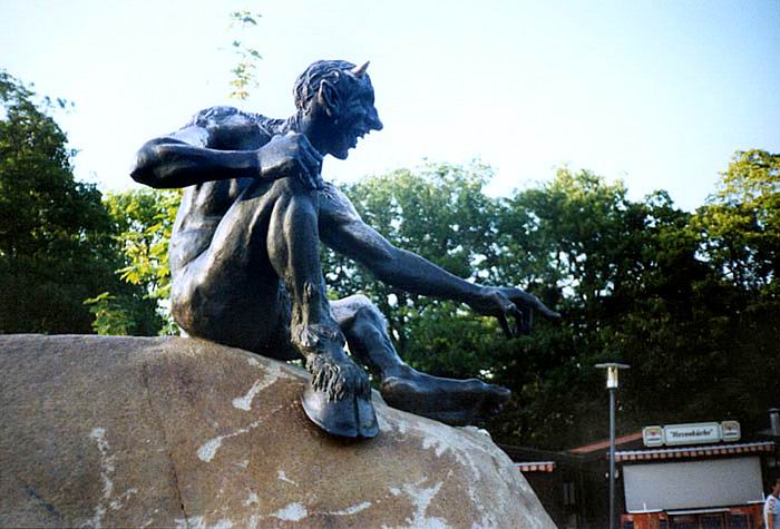 Германия. Гарц. Скульптура черта на горе Хексентанцплац.