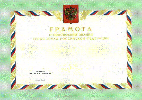 Грамота Героя Труда Российской Федерации. Иллюстрация: kremlin.ru