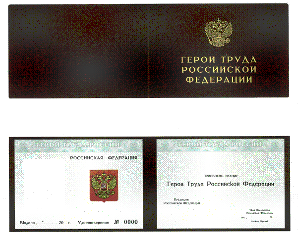Удостоверение Героя Труда Российской Федерации. Иллюстрация: kremlin.ru