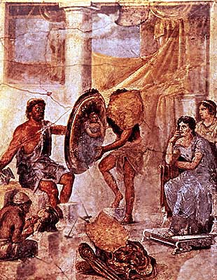 Фреска из Помпей: Гефест показывает Фетиде щит, изготовленный для Ахилла. Ок. 70 н. э. Национальный музей. Неаполь.