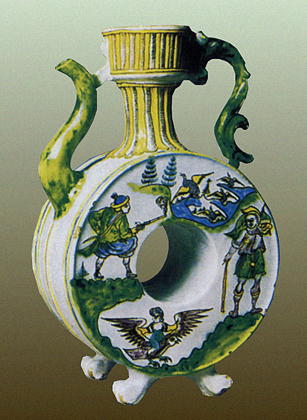 Яркие гжельские квасники из майолики стали выпускать со второй половины 18 века. Квасник — сугубо русский сосуд, не имевший аналогов в западноевропейской керамике.
