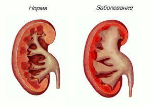 Нормальная и гидронефротическая почки.