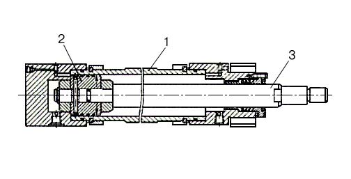 Схема силового гидроцилиндра: 1 – цилиндр; 2 – поршень; 3 – шток.