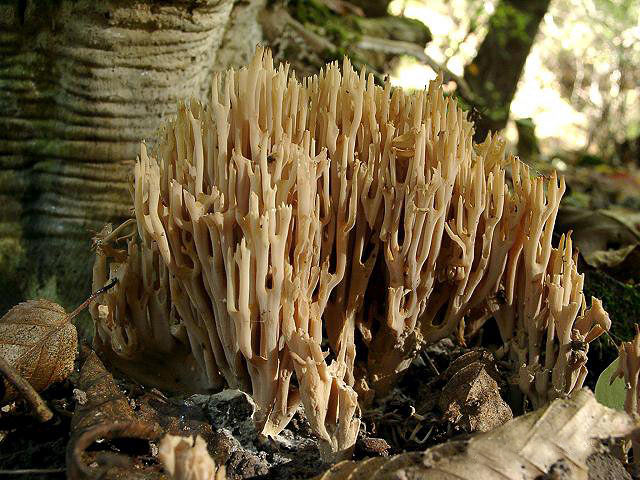 Рамария жесткая (Ramaria stricta), растет летом и осенью на старой, гнилой древесине.