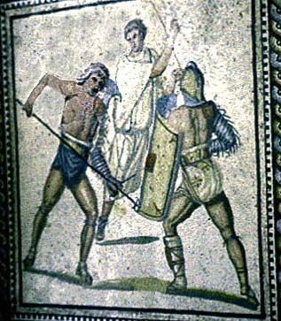 Сражение гладиаторов. Мозаика в римской вилле. 2-3 вв. н. э.