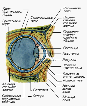 Глаз человека в разрезе (схема).
