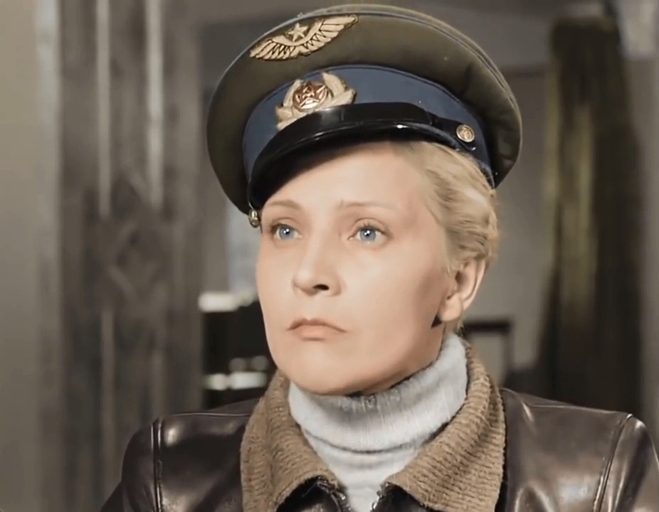 Людмила Глазова. Кадр из фильма "Небесный тихоход" (1945).