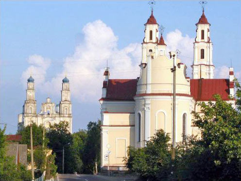 Глубокое. Панорама города. На переднем плане Троицкий костел, на втором плане фасад Рождественского собора.