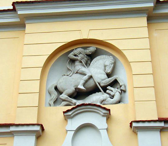 Фасад дома XVIII в. с изображением Георгия Победоносца.
