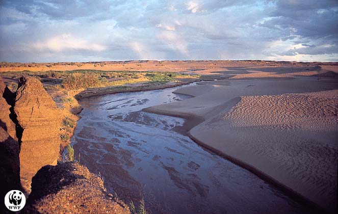 Пустыня Гоби. Весной русла рек наполняются водой, летом пересыхают.