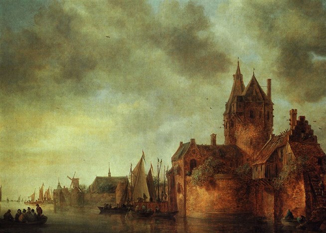 Ян ван Гойен. Замок на реке с лодками у причала. 1642 год. Холст, масло. Частная коллекция.