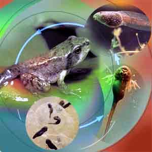 Развитие лягушки протекает в воде и сопровождается метаморфозом. Личинки лягушки - головастики внешне напоминают мальков рыб. У них имеется длинный, уплощенный хвост, боковая линия и жабры.