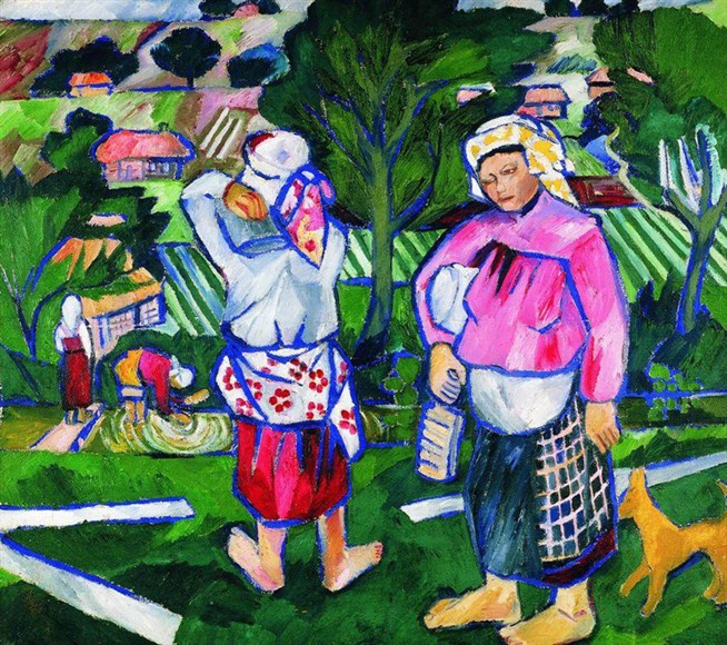 Н.С. Гончарова. Мытье холста. 1910 год. Холст, масло. Третьяковская галерея.