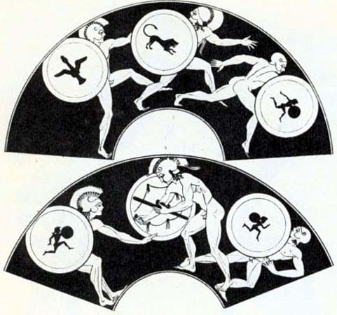 Бег в вооружении — гоплитодром. Рисунок на краснофигурном килике. Ок. 480 до н. э. Берлин.