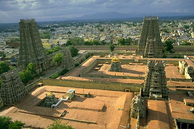 Гопурам (надвратные башни) храма Минакши в Мадурае.