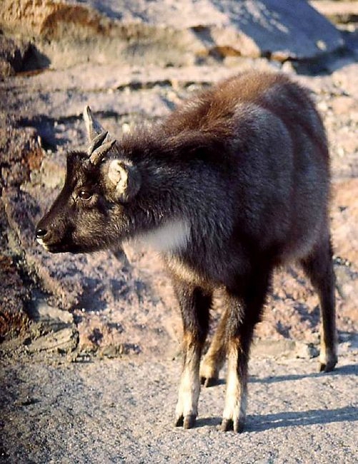 Горал (Nemorhaedus goral) отличается плотным телосложением и внешне напоминает козу. Фотография В. В. Климова.