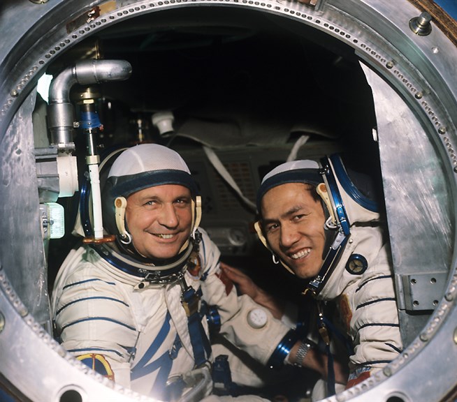 Экипаж «Союза-37»: В. Горбатко и Фам Туан. Июль 1981 года.