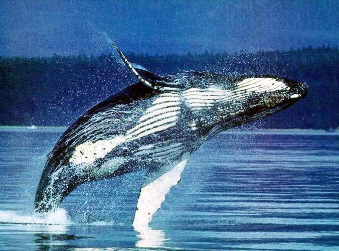 Горбач (Megaptera novaeangliae) имеет крупные полосы на брюхе.
