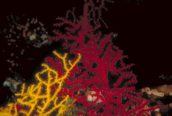 Горгонарии — благородный красный коралл и желтый коралл. Красное море.