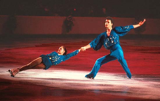 Екатерина Гордеева и Сергей Гриньков выполняеют один из сложнейших элементов парного катания «тодес».