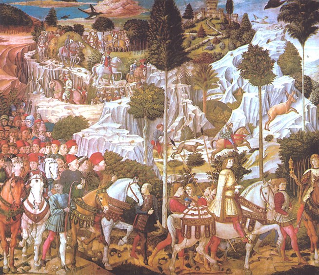 Беноццо Гоццоли. Шествие волхвов. 1459-1461 годы. Фрагмент фрески в капелле Медичи дворца Медичи-Риккарди, Флоренция.
